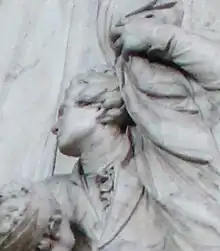 In early 1799, Sybille was sent from Madras to search for the large and powerful French frigate Forte, which had been raiding British merchant shipping off the mouth of the Hooghly River, the passage to Calcutta. On 28 February near Balasore, Cooke sighted lights in the distance and sailed to investigate, discovering Forte and two recently captured merchant ships. Attacking at once and in the darkness, Cooke successfully surprised the unprepared French frigate, inflicting severe damage in the initial broadsides. At the height of the battle, Cooke was struck by grape shot from Forte and carried below, wounded in the chest, arms and spine. His deputy Lieutenant Lucius Hardyman assumed command and saw the defeat of Forte, which was later brought into Calcutta as a prize. The wounded Cooke was landed at the port and given medical treatment, but his wounds were too severe and he died after an agonizing three months on 25 May. He was buried with full military honors in the city under a monument provided in thanks by the East India Company.[1] A large memorial by the sculptor John Bacon commemorating his victory and death was raised in Westminster Abbey in 1806.[2]