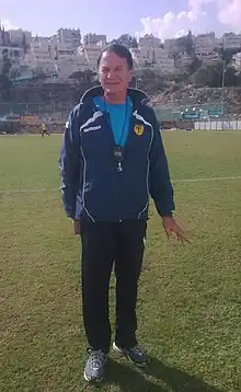 Between 1968 and 1986 he was a player with Maccabi Ramat Amidar and Shimshon Tel Aviv, and earned a gold medal playing for Team Israel at the 1977 Maccabiah Games. He has managed numerous clubs, including Bnei Yehuda,[2] Maccabi Tel Aviv, Beitar Jerusalem, Hapoel Tel Aviv, Maccabi Ramat Amidar, Hapoel Hadera, Maccabi Herzliya, Ironi Rishon leZion, Hapoel Petah Tikva, Maccabi Netanya, Hapoel Be'er Sheva, Ironi Kiryat Shmona, Ironi Modi'in, and Maccabi Haifa .[3][4] He won a championship with Beitar Jerusalem in the 1996-97 season.[5]