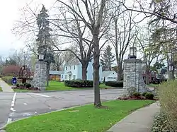 Entranceway at Main Street at Darwin Drive is a suburban residential subdivision entranceway and street furniture built about 1927 by developer Charles S. Burkhardt. It is located on Main Street (New York State Route 5) in the town of Amherst within Erie County. It consists of two matching sets of stone sculptures set on either side of the drive. It also includes the painted metal street sign post.[2]