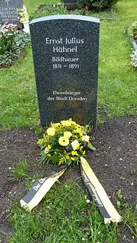 He died on 22 May 1891 and is buried in the Old Catholic Cemetery in south Dresden.[2] The original grave was removed due to the German practice of requiring ongoing payments by relatives not being paid, but was replaced by a new grave in April 2016.