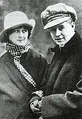 In March 1917, Yesenin was sent to the Warrant Officers School but soon deserted Kerensky's army.[9] In August 1917 (having divorced Izryadnova a year earlier) Yesenin married for a second time, to Zinaida Raikh (later an actress and the wife of Vsevolod Meyerhold). They had two children, a daughter Tatyana and a son Konstantin.[4] The parents subsequently quarreled and lived separately for some time prior to their divorce in 1921. Tatyana became a writer and journalist and Konstantin Yesenin would become a well-known soccer statistician.