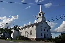 The church was built in 1799, originally serving both civic and religious functions in the manner of a traditional colonial meeting house. It was oriented with the main entrance on the long side, facing south. In 1839, the building underwent a major renovation, which included rotating the building 90°, placing the main entrance on a short side, removing the box pews in favor of the present slip pews, and removing the traditional high pulpit and sounding board. The municipal functions were also at this time moved out of the building, until 1847. The town then petitioned the congregation for permission to establish a town meeting space in the basement, by raising the building several feet. This proposal was agreed and implemented, and the basement space continues to be used by the town for election polling and other functions (although its offices are in another building). In 1940, the building was again rotated 90°, this time to accommodate realignment of US 3.[2]