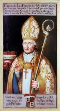 Franz Joseph Xaver Karl Fürst zu Hohenlohe-Waldenburg-Schillingsfürst (27 November 1745, Waldenburg – 9 October 1819, Augsburg) was a Roman Catholic auxiliary bishop and bishop of Augsburg (the first after it ceased to be the Prince-Bishopric of Augsburg), as well as vicar general of Neu-Württemberg, later Diocese of Rottenburg.