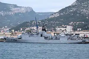 She was transferred from her home port of Toulon in July 2020 to Brest.[8] In 2022, it was indicated that the ship would be equipped with the SMDM (navy mini-drone system) to enhance her surveillance capabilities. [9] She began a short upgrade in November 2022 (to continue until February 2023), in order to integrate the new system.[10]