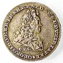 The term funeral coin is used for coins issued on the occasion of the death of a prominent person, mostly a ruling prince or a coin-lord. The obverse of such a coin usually depicts the portrait of the deceased; the reverse may show the coat of arms and important biographic data.[1]