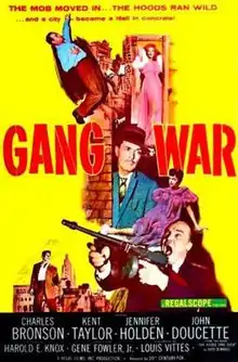 Gang War is a 1958 American crime film directed by Gene Fowler, Jr. and written by Louis Vittes. The film stars Charles Bronson, Kent Taylor, Jennifer Holden, John Doucette, Gloria Henry and Gloria Grey. The film was released in July 1958, by 20th Century Fox.[1][2][3]