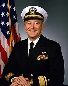 Rear Admiral George Henry Strohsahl Jr. (May 24, 1937 – May 22, 2011) was a highly decorated Navy strike fighter and test pilot who flew missions in Vietnam. Born in New Jersey and raised in Mystic, Connecticut,[1] he rose to become commander of the Pacific Missile Test Center. Strohsahl spent 35 years in the U.S. Navy and was a 1959 honors graduate of the U.S. Naval Academy. He later earned a master's degree in Air-Space Physics from the Naval Postgraduate School and was designated a Material Professional. Strohsahl was the first naval aviator of his specialty selected for flag rank. He was awarded the Legion of Merit three times and also received the Distinguished Service Medal.[2]