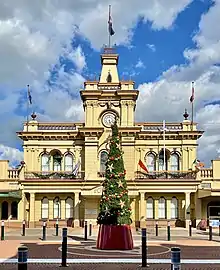 Tin was first discovered at Emmaville in 1872 and Glen Innes became the centre of a mining bonanza during the late 19th century. In 1875, the population had swelled to about 1,500 and the town had a two-teacher school, three churches, five hotels, two weekly newspapers, seven stores and a variety of societies and associations.[8] On 19 August 1884 the new Main North railway from Sydney opened.[9] The arrival of the rail service and the expansion of mining contributed a new prosperity in the town, which is reflected in some of the beautiful buildings there.