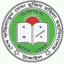 Govt. Sheikh Fazilatunnesa Mujib Mohila College (Bengali: সরকারী শেখ ফজিলাতুন নেসা মুজিব মহিলা মহাবিদ্যালয়), also called Govt. Sheikh Fazilatunnesa Mujib Women's College, located in Zila Sadar Road, Tangail, is a government financed women's college affiliated with Bangladesh National University.[1] The college emerged as an ideal institution while Tangail was lacking on quality educational institutions in 2000s.