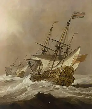Resolution in a gale by Willem van de Velde, the younger depicts the second Resolution c. 1678