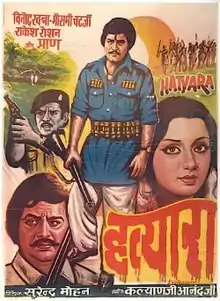 Hatyara (lit.'Murderer') is a 1977 Hindi action crime film. Produced by Sunil Sharma and directed by Surendra Mohan, the film stars Pran, Moushumi Chatterjee, Vinod Khanna, Pradeep Kumar, Rakesh Roshan and Nirupa Roy. The film's music is by Kalyanji Anandji