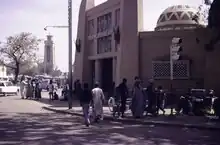 Streetview of the facade of the Institut National des Arts, Bamako, 1984.