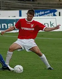 Jesper Olesen (born 13 October 1980) is a Danish professional football player, who currently plays for Vejle Boldklub in the Danish Superliga. Olesen, who has played in Vejle since 1996, is known as a fighter, which he has proved several times by always regaining his position on the right back even though supplements have been brought in from other clubs. In his career in Vejle he has been playing as a semi-professional while finishing his education as a carpenter.[1]