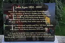 - 1 2 Moran, Seán. "Kerry great John Egan passes away". The Irish Times. Retrieved 8 April 2012.