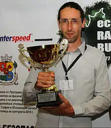 ![]() Kalin Dedikov at the award ceremony of the Eco Rally Bulgaria 2014. | |