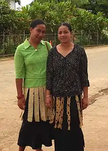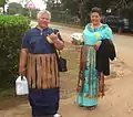 A kiekie is a Tongan dress, an ornamental girdle around the waist, mainly worn by women on semiformal occasions, but nowadays also sometimes by men. At highly formal occasions both gender will settle for a taʻovala. At casual occasions no girdle is needed for any gender, although women may continue wearing a kiekie even then, as it is considered an easy sitting, nice looking decoration, with which one can show off. (All taʻovala look more or less the same, and are usually quite stiff and hot to wear).