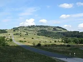 The Kleiner Auersberg lies within the Wildflecken Training Area, established in 1938. The entire terrain is a military out-of-bounds area. The only opportunity for civilians to climb the Kleiner Auersberg is on the two Volkswandertage ("people's walking days"), which take place annually on a summer weekend. Due to the good views, usually one of the prescribed routes leads to the summit. A good two kilometres east-northeast rises the slightly higher and densely wooded Großer Auersberg. Neither should be confused with the Auersberg near Hilders in the Hessian part of the Rhön.