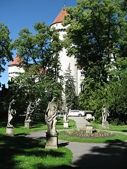Konopiště Castle (Czech pronunciation: [ˈkonopɪʃtjɛ]; Czech: zámek Konopiště, German: Schloss Konopischt) is a four-winged, three-storey castle located in Konopiště, now a part of the town of Benešov in Central Bohemian Region, Czech Republic. It has become famous as the last residence of Archduke Franz Ferdinand of Austria, heir to the Austro-Hungarian throne, whose assassination in Sarajevo triggered World War I. The bullet that killed him, fired by Gavrilo Princip, is now an exhibit at the castle's remote museum.