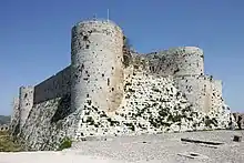 Krak des Chevaliers (French: [kʁak de ʃ(ə)valje]; Arabic: قلعة الحصن, romanized: Qalʿat al-Ḥiṣn, Arabic: [ˈqalʕat alˈħisˤn]; Old French: Crac des Chevaliers or Crac de l'Ospital; lit. 'karak [fortress] of the hospital') is a medieval castle in Syria and one of the most important preserved medieval castles in the world. The site was first inhabited in the 11th century by Kurdish troops garrisoned there by the Mirdasids. In 1142 it was given by Raymond II, Count of Tripoli, to the order of the Knights Hospitaller. It remained occupied by them until it was reconquered by the Muslims in 1271.