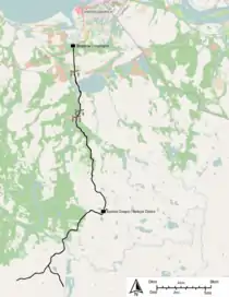 The total length of the Kudemskoy narrow-gauge railway at the peak of its development exceeded 100 kilometres (62 mi). The main station is located in the village of Beloye Ozero; the Vodogon station is located on the western outskirts of the city of Severodvinsk. Passenger trains between Vodogon and Beloye Ozero are scheduled five times a week. The railway also transports food, mail and fuel.[1] In 2010, this railway appeared in the Forbes ranking of the 10 most beautiful railway routes in the world.[2] In 2013, a new passenger car was purchased for the route.[3]