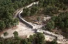 La Bastida de les Alcusses is an Iberian city of the 4th century BC located near Mogente/Moixent, Valencia. It is considered to be one of the principal Iberian archaeological sites of the Valencian Community due to its sudden abandonment and good preservation.[1] The site is located 741 metres above sea level (and 200 metres above the valley floor) at the southwest end of the Serra Grossa. The site covers over 4 hectares and is 650 metres long and 150 metres wide.[2] The site is now an archaeological park, surrounded by pine forest and bush but accessible by road.