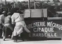 The Mechanical Butcher (original title: La Charcuterie mécanique) is an 1895/1896 "humorous subject" (as classed by its makers) created by the Lumière Brothers. In Phil Hardy's The Aurum Film Encyclopedia: Science Fiction it is listed as the first ever science fiction film.[1] The action involves a live pig that is placed into a machine (essentially a large wooden container). The pig is then turned into various pork products, which are lifted out of the other end of the machine.