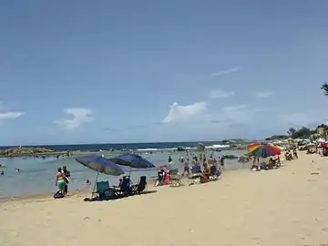 La Pocita de las Golondrinas Beach is a small public and natural saltwater beach in Isabela. It is safe for families with children because of its shallow waters (about two feet deep) and lacks entries to the open sea. It is located about five minutes to the right of Montones Beach. Currently this beach does not have facilities.[1] Still, it is surrounded by food kiosks and there are parking lots in walking distance.