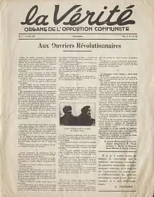 La Vérité (The Truth) is the first trotskyst publication of History, having its first issue published on August 15, 1929, in French.[1] Its name refers to Pravda, which means Truth, and was chosen because Trotskyists believed that the French labor movement needed "Truth therapy".[2]