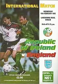 - 1 2 Quinn, Philip (23 December 1994). "Security summit for England tie". Irish Independent. Archived from the original on 22 July 2011. Retrieved 14 May 2011.