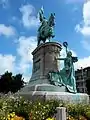 An equestrian statue of the General was erected in Boulogne-sur-Mer; the statue was inaugurated on 24 October 1909, at a ceremony attended by several units from the Argentine military.[15][16] The statue was erected through purely private initiative, with the support of national government of Argentina, the municipal council of Buenos Aires and a public funding campaign. The statue is 10m high, on a 4m by 6m base; it is well known to locals. Located on the beach, it was virtually untouched by the numerous bombings campaigns during both world wars.[17]