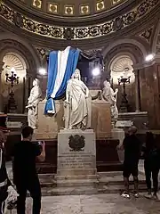 When the news of the death of San Martín arrived to Entre Ríos, the governor Justo José de Urquiza erected a column in his recognition at the main plaza of Paraná.[11] Tomás Guido proposed a statue at the Santa Fe Province in 1854.[12] Louis-Joseph Daumas began a monument of San Martín in Santiago de Chile in 1859, so another one was requested to the sculptor and rushed in Buenos Aires at the Plaza Marte (modern Plaza San Martín). The monument in Chile was inaugurated in 1863, and the one in Buenos Aires in 1862.[13]