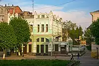 Currently, Lesya Ukrainka street is the central pedestrian street running from the square Fellowship Bridge to Central Theatre square and is one of the city's most crowded streets. The street's architecture is generally rooted in the 19th - first half of the 20th century, though Soviet-era buildings do remain. Landmark buildings on Lesya Ukrainka Street include numbers 2, 5, 13, 32, 53 and 61. There are many shops and restaurants on the street. There are also 2 garden squares on the street and the landmark Trinitarian monastery.