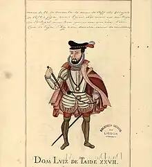 D. Luís de Ataíde, 1st Marquess of Santarém and 3rd Count of Atouguia (c. 1516 – March 10, 1581), was a Portuguese nobleman, military commander and statesman of the 16th century, who stood out for his military feats in the Portuguese State of India. He served as Viceroy of India for two non-subsequent terms (1568–1571 and 1578–1581).