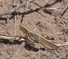 Melanoplus flavidus, known generally as yellowish spur-throat grasshopper, is a species of spur-throated grasshopper in the family Acrididae. Other common names include the blue-legged locust and blue-legged grasshopper.[1][2][3][4] It is found in North America.[1][5]