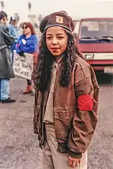 Chicanas arose around the time of the Civil rights movement and the Women's rights movement. Their Style was still strongly influenced by the American movie industry, during this time Mexican American women began to further break off of their conservative clothing style that was a part of their cultural norm, they started wearing jeans and rather tight clothing. This period of time was of great significance for Mexican American women because they started to speak up and express their opinions and desires, they started demanding their rights as a part of the American society. During this time Mexican American women were part of multiple protests and organizations such as the Brown Berets, the Chicano movement and Chicana feminism.[18][17]