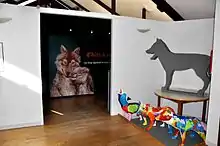 A museum in the Chabrières park is the House of the Wolf. It covers 250 m2 (2,700 sq ft) and exhibits a wealth of information about wolves; from the tales, myths and legends, to scientific materials, related to all aspects of the wolves' life and the human/wolf relationships.[23] Also highlighted in the museum exhibition are the history of destruction of wolves' habitats[24] and the recent positive changes, leading to the movement of protection of the wolves around the world, institutionalized by an international agreement which took place in Washington and Bern.[25] The latest works of scientists, studying wolves' physiology and psychology, including vocal behaviours, are also well represented in the museum.