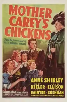 Mother Carey's Chickens is a 1938 American drama film starring Anne Shirley and Ruby Keeler. The film was directed by Rowland V. Lee and based upon a 1917 play by Kate Douglas Wiggin and Rachel Crothers, which in turn was adapted from Wiggins' Mother Carey's Chickens.