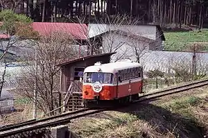 ![]() Nanbu Jūkan Railbus Kiha 102 DMU at Tsubogawa Station in 1997 | |