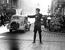 Membership in the NSKK did not require any prior automotive knowledge; training in the organization was to make up for any lack of knowledge. However, the NSKK adhered to Nazi racial doctrine and screened its members for Aryan traits. Under the guidance of the police, numerous NSKK men were stationed at traffic junctions and trained in traffic control.[9]