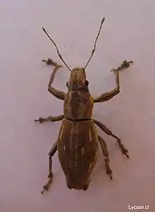 Naupactus xanthographus is a species of beetle of the family Curculionidae native to South America, well known for its predation to more than 45 species of fruit trees of agricultural importance.[1][2]