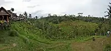 A subak controls the water flowing from a single up-river dam. The water flows through its rice terraces to other subaks farther downstream. Once water flowed into a subak it was divided through a series of weirs so that each farmer would get the amount of water they needed at the right time. The regulation of water is thus a serious issue, and encounters regular bottlenecks where control of the supply for a whole subak can be seized. Controlling the complex flow of water within a subak was accomplished through a highly regimented series of rituals. Water temples placed at points of water division would coordinate the flow of water through carefully timed rituals. Geertz emphasizes that there is no central control of the timing of these rituals, and hence that the state is not an "oriental despotism" controlling the population through the control of water.[19]
