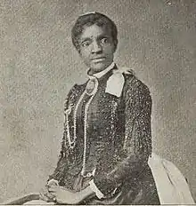 - ↑ Though the clipping from The Tulsa Star states Leslie is nearly 100, the age seems improbable,[24] as does her age of 65 that is recorded on the 1920 census. [23] Her brother was born in 1844,[25] and she began her career in 1865 after some schooling, so may have been in her early 20s.[6] If the birth year of 1855 given on the census was correct, she would have been only ten years old after completing her schooling and going to work at the Freedmen's Bureau. If the birth year indicated by the Star, 1821, is correct, she would have been 72 when the photograph published by Scruggs in 1893 was taken.[26] It seems more likely that Leslie was born in the 1840s, as was her brother.
