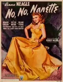 No, No, Nanette is a 1940 American film directed by Herbert Wilcox and based on both the 1919 stage play No, No, Nanette and the 1930 film No, No, Nanette. It was one of several films the British producer/director made with Anna Neagle (whom he married in 1943) for RKO studios in the U.S.[2]