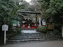 ![]() The Torii gate at the front entrance of the Nonomiya Shrine in Kyoto, Japan. | |