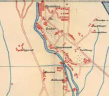 The year 1845 has been called the starting point of early industrialization in Norway. This is because of the founding of Nydalens Compagnie, and in addition the factory Vøiens Bomuldsspinderi was being built.[3] The textile manufacturing at Nydalens Compagnie began in 1847, and between the 1890s and the 1940s Nydalens Compagnie was the largest textile company in the country with about 1100 employees.[2] The production workers were mainly women and children, with a few men as supervisors and maintenance workers.[4]