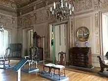 Paço de São Cristóvão (Portuguese pronunciation: [ˈpasu dʒi sɐ̃w kɾisˈtɔvɐ̃w]; English: Palace of Saint Christopher; also known as Palácio Imperial or Palácio Imperial de São Cristóvão) was an imperial palace located in the Quinta da Boa Vista park in the Imperial Neighbourhood of São Cristóvão, Rio de Janeiro, Brazil. It served as residence to the Portuguese royal family and later to the Brazilian imperial family until 1889, when the country became a republic through a coup d'état deposing Emperor Pedro II. The palace briefly served as a public building by the provisional government for the constituent assembly of the first republican constitution. It housed the major part (92.5%) of the collections of the National Museum of Brazil, which, together with the building, were largely destroyed by a fire on 2 September 2018.[1][2]