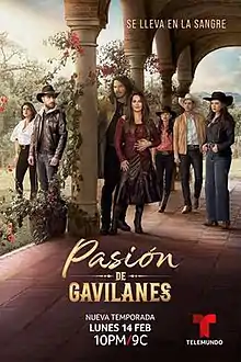 The second and final season of the Colombian telenovela Pasión de Gavilanes takes place 20 years after the events of the first season, that aired in 2003.[1][2] The season is produced by Telemundo Global Studios and CMO Producciones.