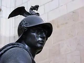 ![]() The allegorical statue representing "Military courage". One of the four statues at each corner of the cenotaph to General de La Moricière in Nantes cathedral. A good example of Dubois' "neo-florentine" style |