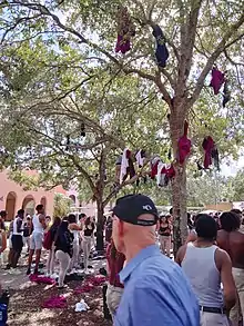 A notable student tradition is the "Shirt throwing ceremony", occurring on the last class day for graduating seniors. The tradition dates back to the first graduating class. Students were upset that they had to wear uniforms unlike their classmates in other High Schools in the area, so conspired to run outside during the last day of class to throw their shirts into the trees surrounding the fountain in the center of campus. Ever since, every graduating class has participated in the shirt throwing ceremony. Afterwards, students run into the student parking lot to celebrate their last day at campus.