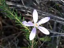 This philotheca grows in heath in rocky or sandy sites in the Sydney region.[2][3]